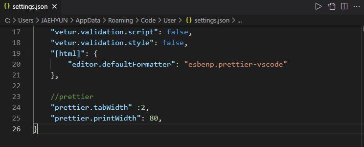 - printWidth : 지정 글자수 이상 자동 줄바꿈